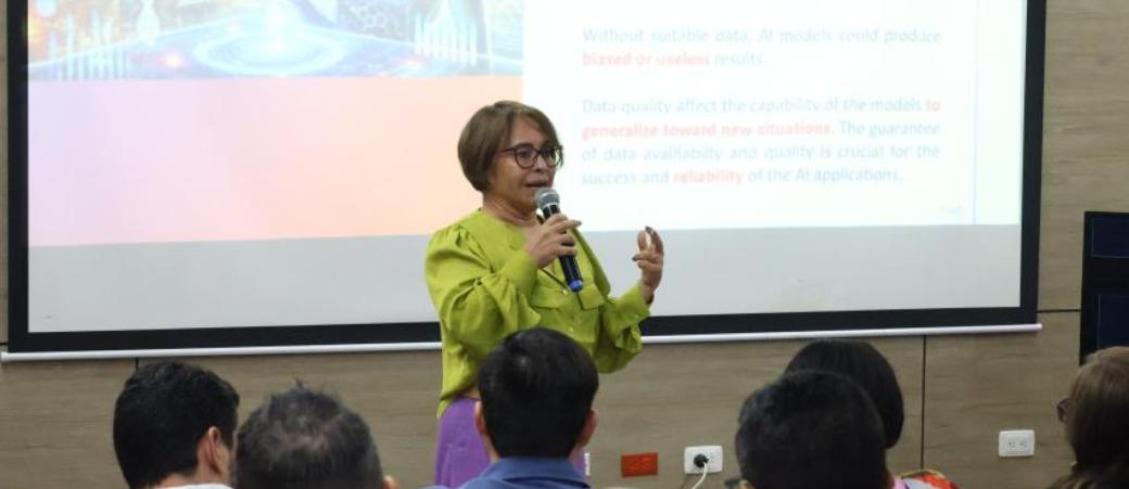 Durante su intervención, la Dra. Cerrada destacó cómo la IA está transformando diversos sectores productivos, optimizando procesos y mejorando la toma de decisiones a partir del análisis de grandes volúmenes de datos. Explicó cómo los KPI permiten medir el desempeño y la eficiencia de las estrategias empresariales cuando se combinan con tecnologías avanzadas, logrando una mayor competitividad en el mercado global.