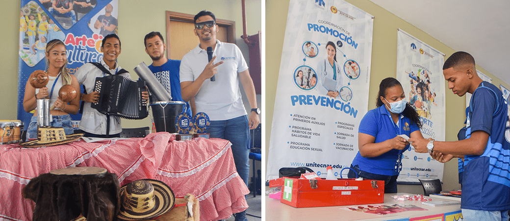 - Arte y Cultura ofrece programas de danza moderna, danza folclórica, cine club, orquesta, teatro, coro y grupo vallenato; así como programas formativos en diferentes instrumentos musicales.