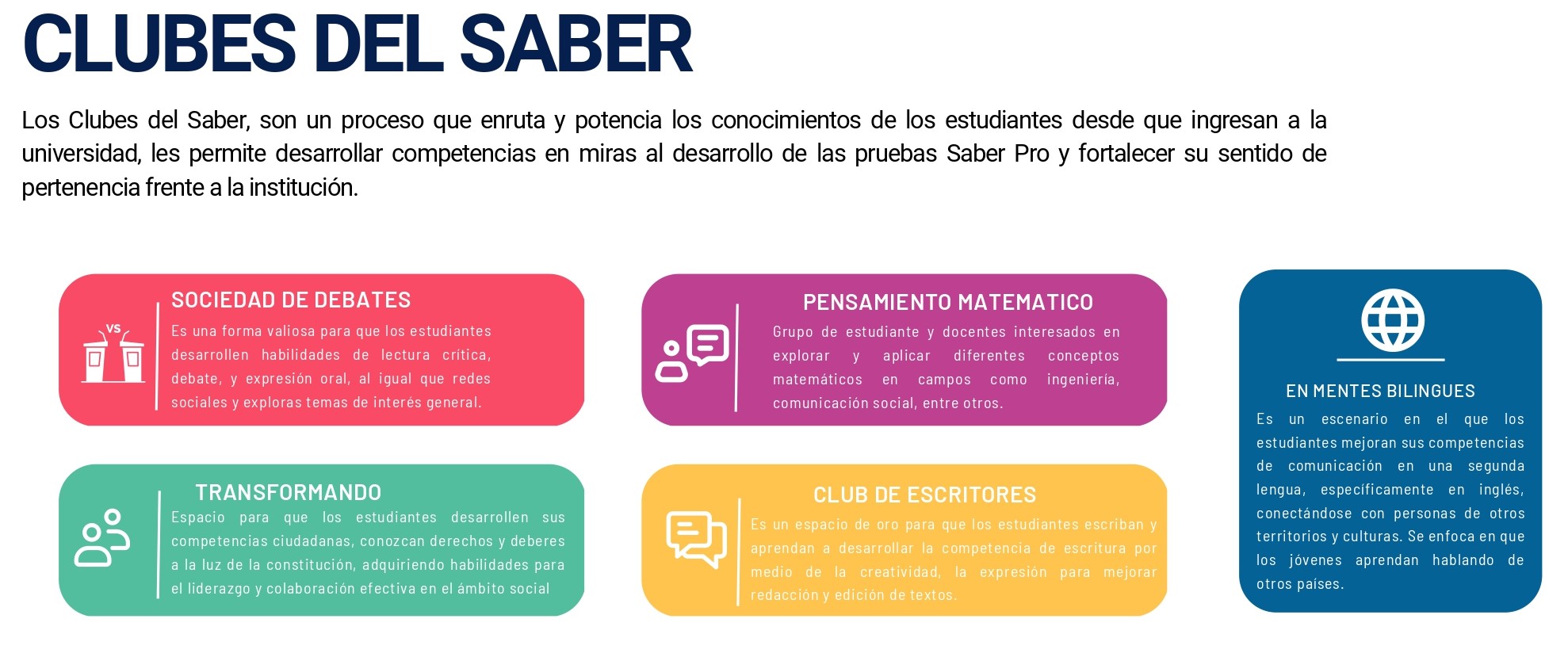 Nuestra Agenda Pruebas Saber PRO y TYT Test De Excelencia y Clubes Del Saber Nuestros Públicos Contactos