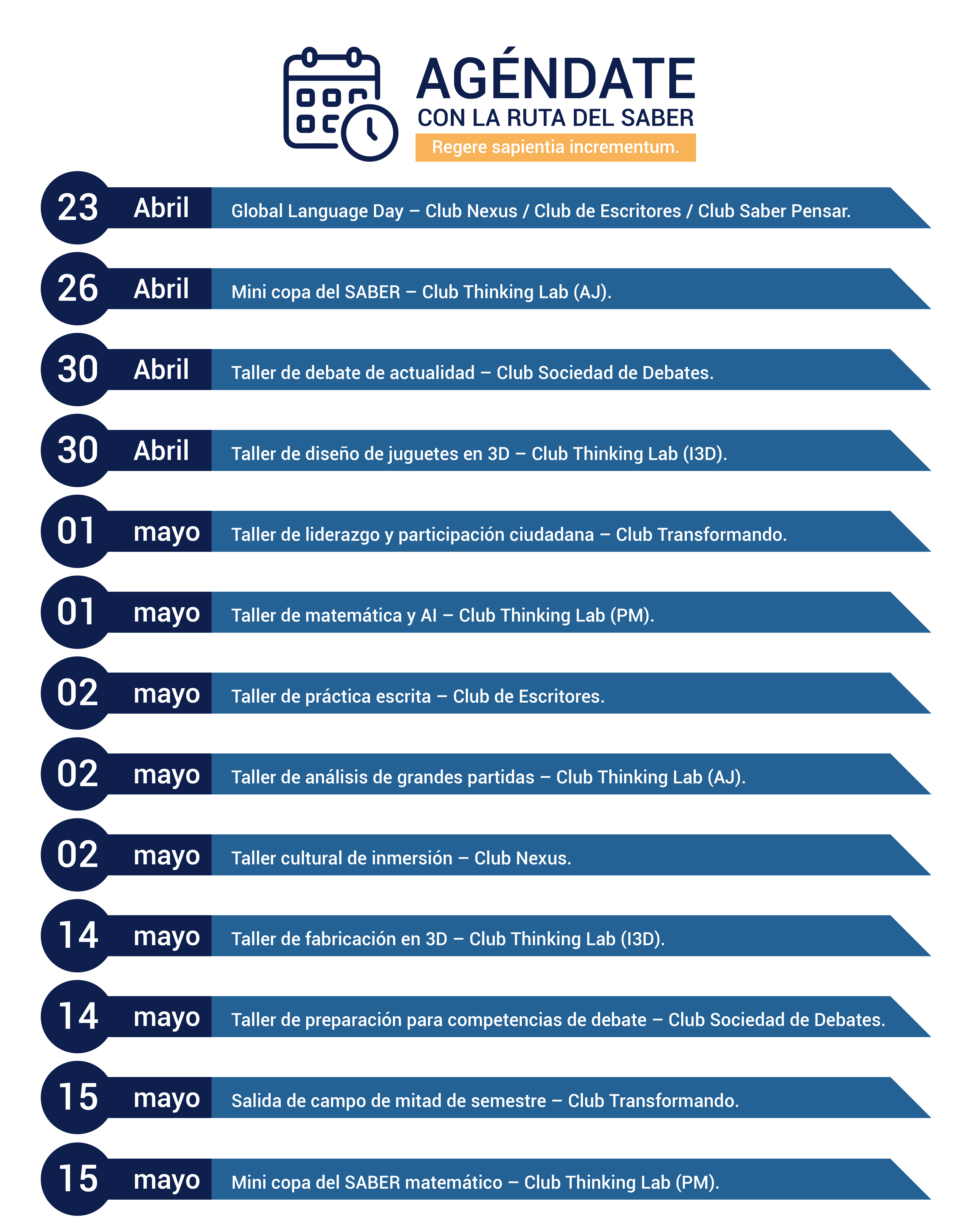 La RUTA DEL SABER es un programa de la Vicerrectoría académica de la Fundación Universitaria Antonio de Arévalo – UNITECNAR que busca fortalecer el desarrollo de las competencias genéricas a través de estrategias, iniciativas y actividades que vinculan academia, clubes y experiencias prácticas, fomentando la formación integral y el aprendizaje significativo. La Ruta del Saber promueve la exploración de diferentes áreas del conocimiento y la adquisición de habilidades transversales para el éxito académico y profesional de los estudiantes de UNITECNAR.